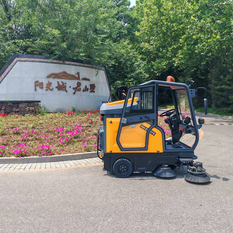 阜阳颍上县金色湖畔(高层洋房聚居区)携手南通明诺 MN-E810FB 电动封闭式大功率扫地机,打造人居清洁新标杆!针对小区道路、广场、绿化带周边等多场景清洁需求,这款设备以硬核实力焕新居住环境。 大功率双电机驱动加持,吸扫同步高效作业,轻松应对落叶、粉尘、碎屑等各类垃圾,清扫效率较人工提升 80%,覆盖小区公共区域无压力。全封闭驾驶舱设计,隔绝扬尘与噪音,守护保洁人员健康的同时,避免打扰居民生活,适配居民区敏感环境。 电动驱动实现零排放零污染,契合绿色社区理念,低能耗续航满足全天清洁需求。灵活操控搭配智能清扫系统,狭窄通道、楼栋拐角皆能精准覆盖,不留清洁死角。 从晨光初现到暮色降临,明诺 MN-E810FB 以科技力量为金色湖畔筑牢洁净防线,让业主漫步其间,目之所及皆清爽。专业清洁设备,赋能品质人居,南通明诺为更多社区提供高效环保的清洁解决方案!