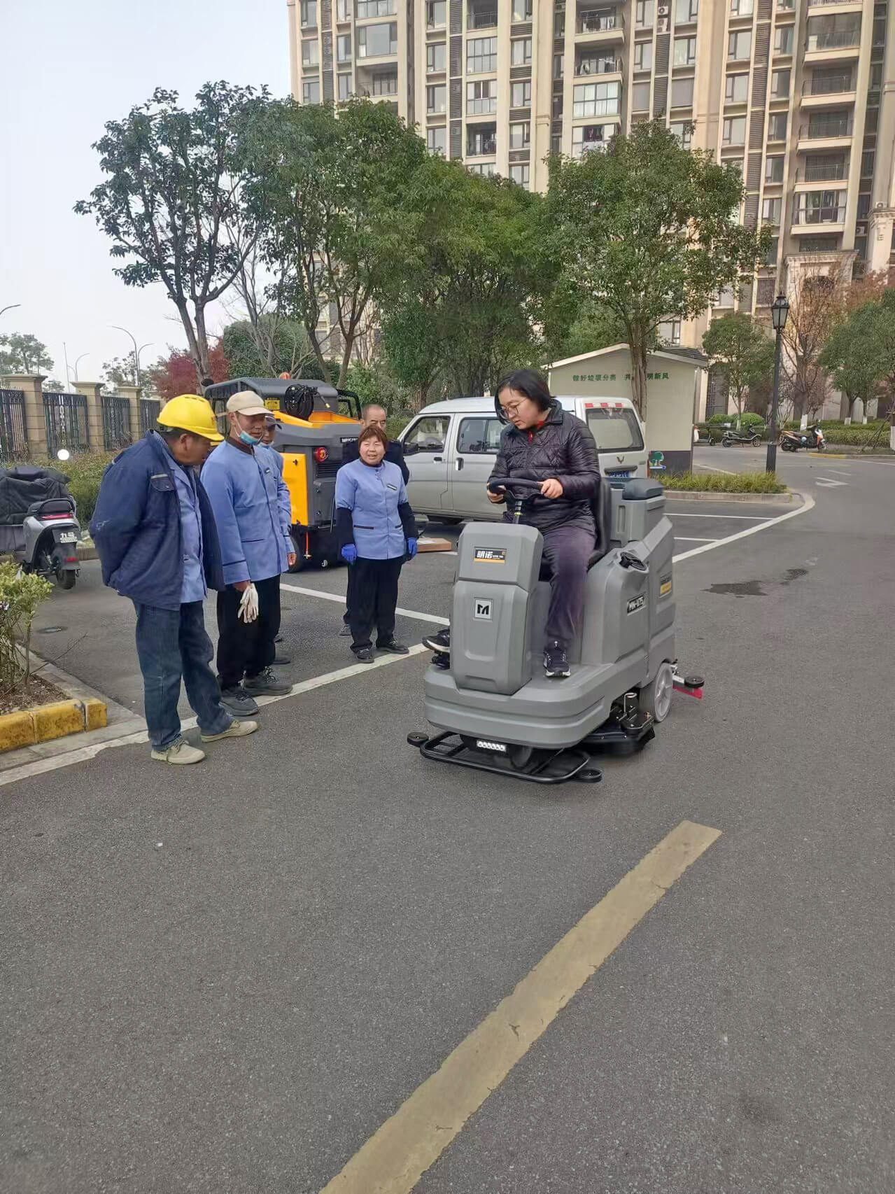 此次引入的E810FB封闭式扫地机具备高效清扫、低噪音运行、自动避障等功能,适用于小区道路、地下车库等场景;V75驾驶式洗地机则集洗地、吸污于一体,可快速清洁大堂、电梯厅等公共区域。两款设备均采用环保节能设计,在提升清洁效率的同时,减少人工成本,为业主提供更洁净、舒适的居住环境。