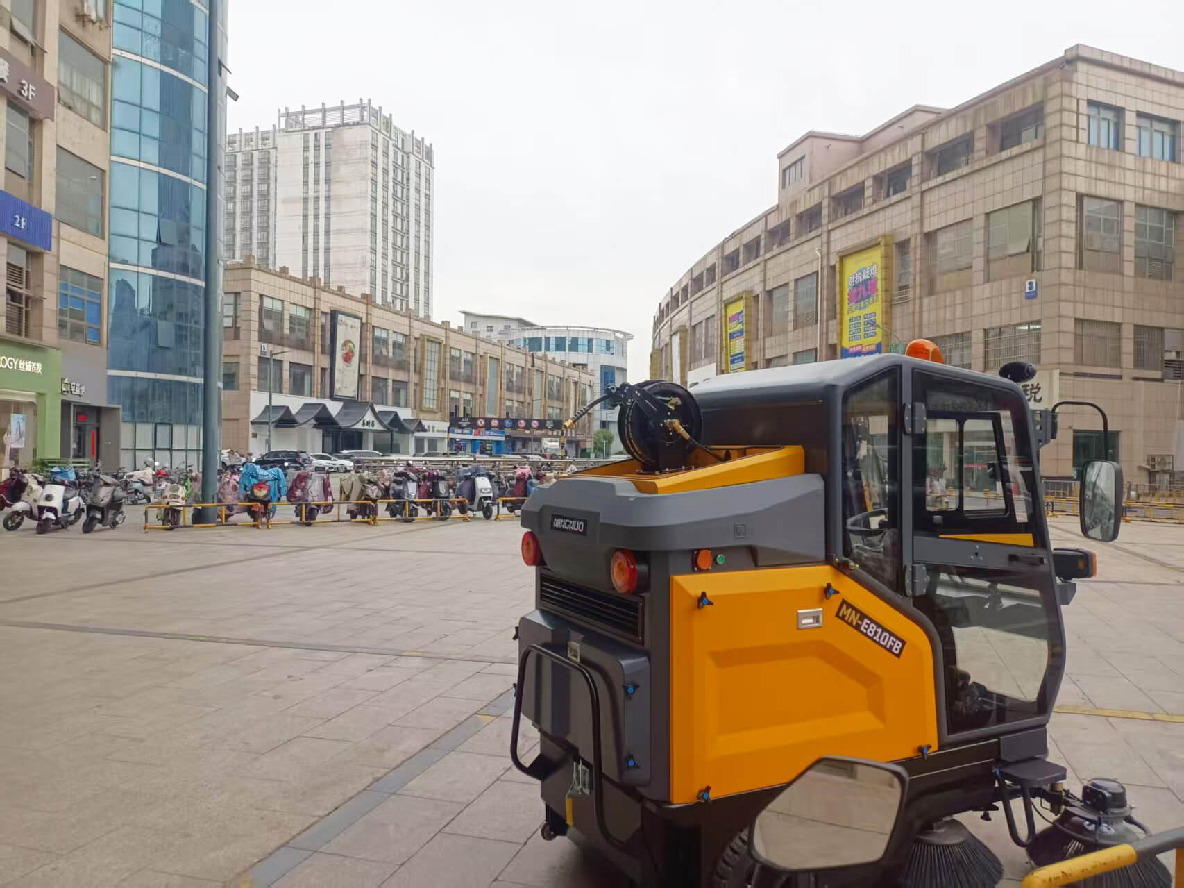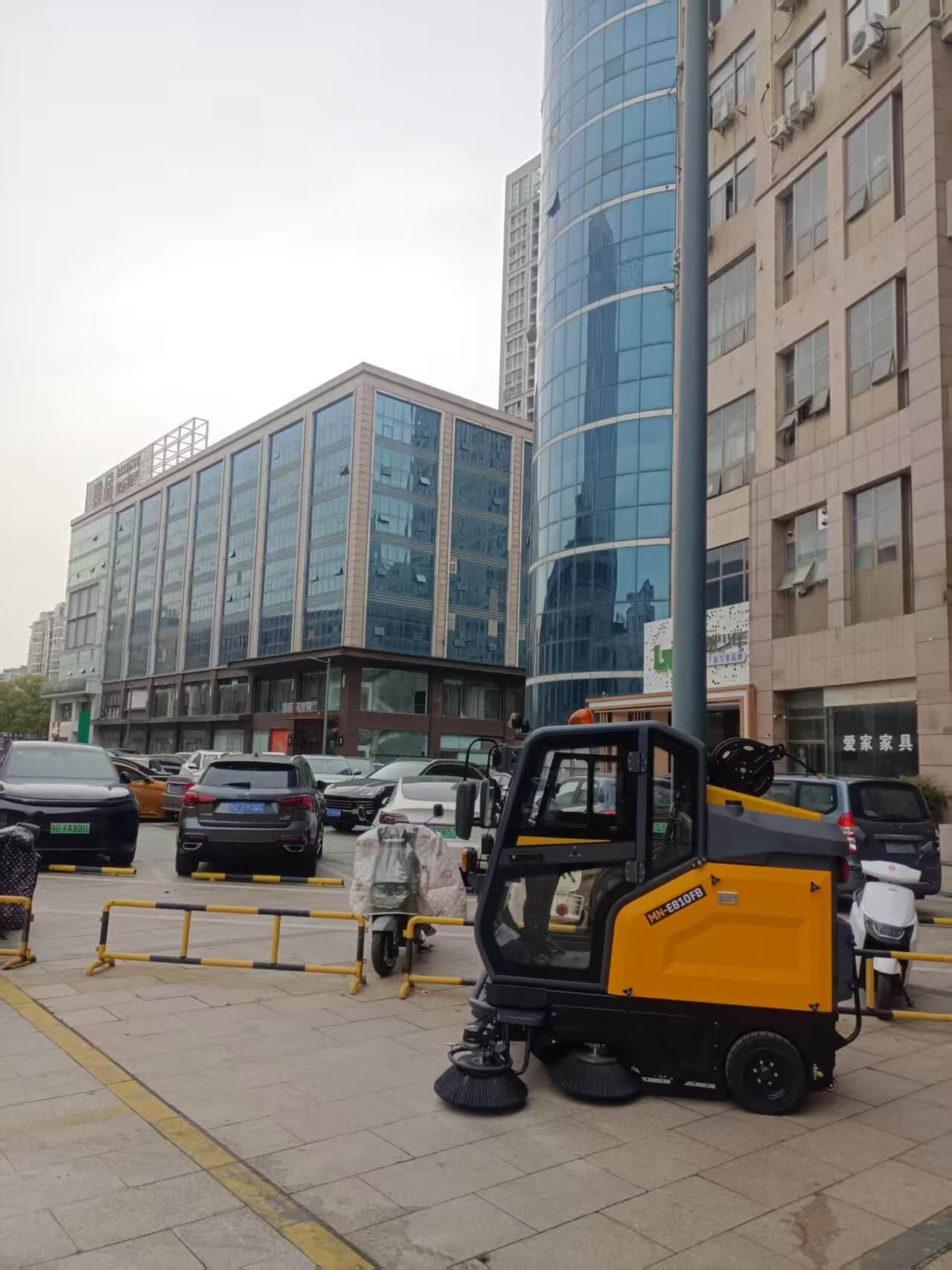 常州南阳商业广场作为当地重要的商业综合体,始终致力于提升环境卫生管理水平。为高效清洁广场外围地面,该广场创新引入了明诺E810FB封闭式扫地机,显著提升了清洁效率和作业品质。
