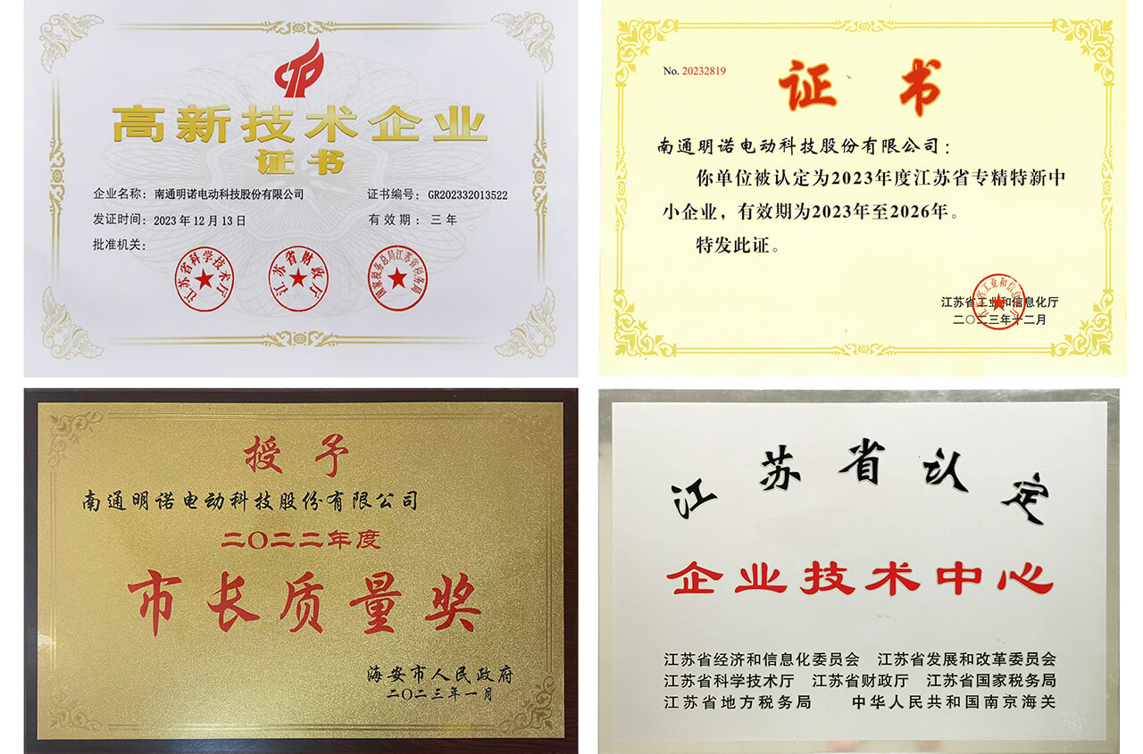 以下为明诺公司所获得的部分荣誉证书、资质认证、专利展示: