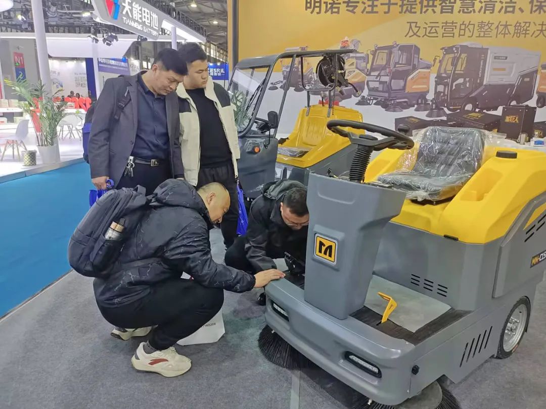 南通明诺电动科技股份有限公司作为本次展会的重要参展商之一,携带多款清洁设备新品参展。这些产品包括C150小型扫地机、E850FB封闭式扫地机、新款S1800四轮扫路车、S130多功能清扫车、V75驾驶式洗地机等。此外,公司还展示了先进的锂电池技术以及单桶智能垃圾亭等相关产品。这些产品的展示进一步展示了南通明诺公司在清洁技术领域的全面实力和丰富产品线,吸引了众多观众的关注和好评。