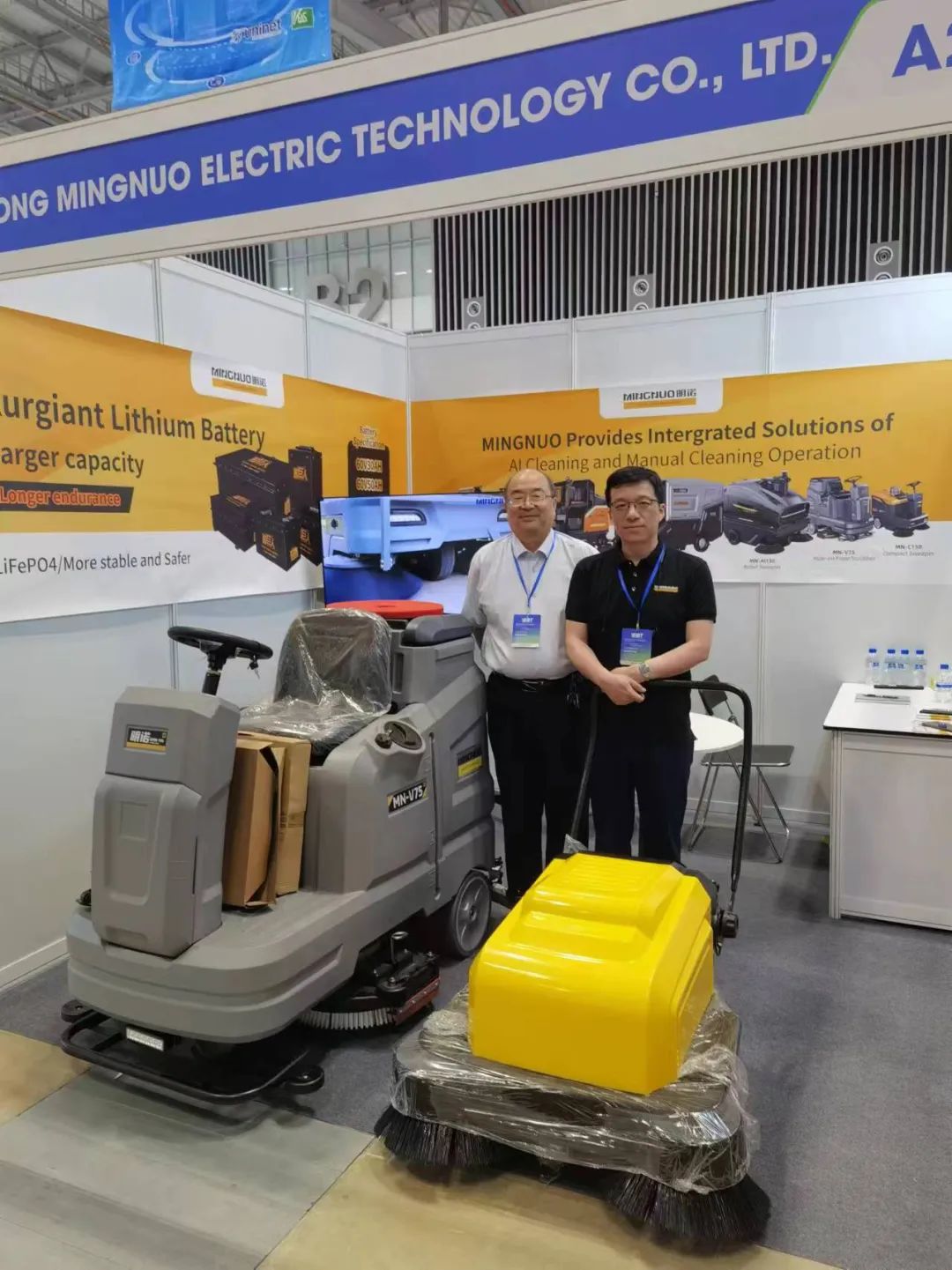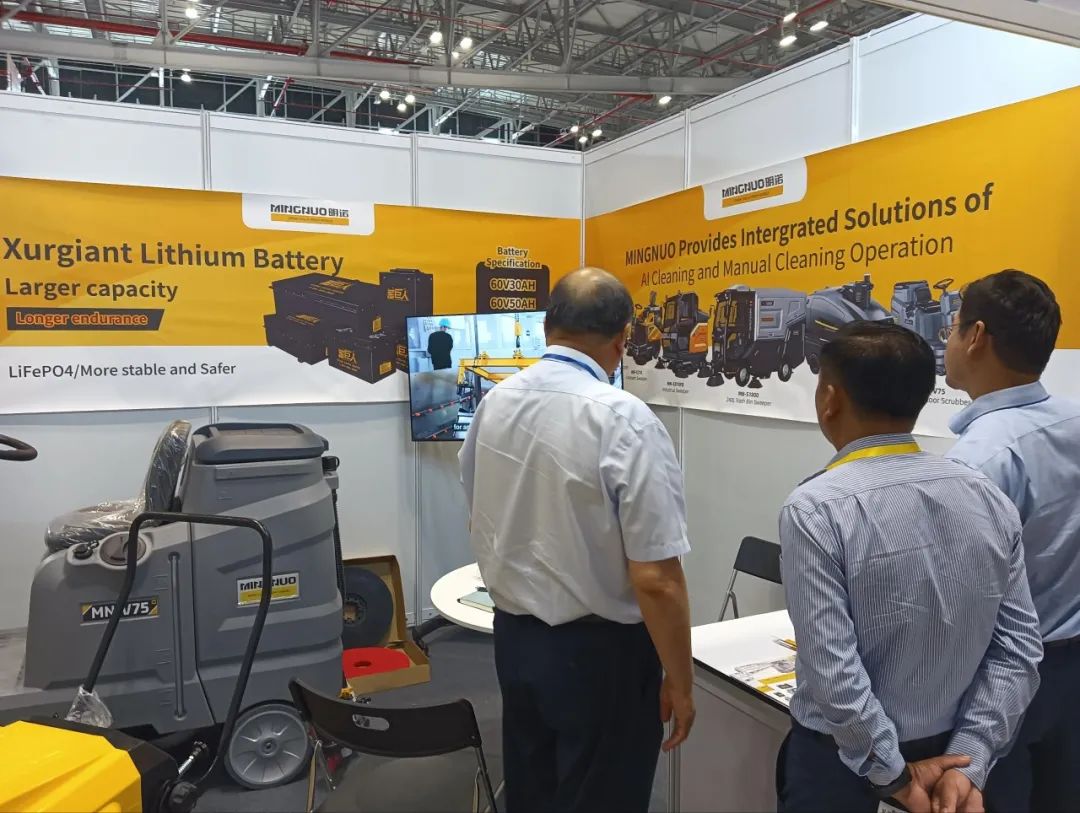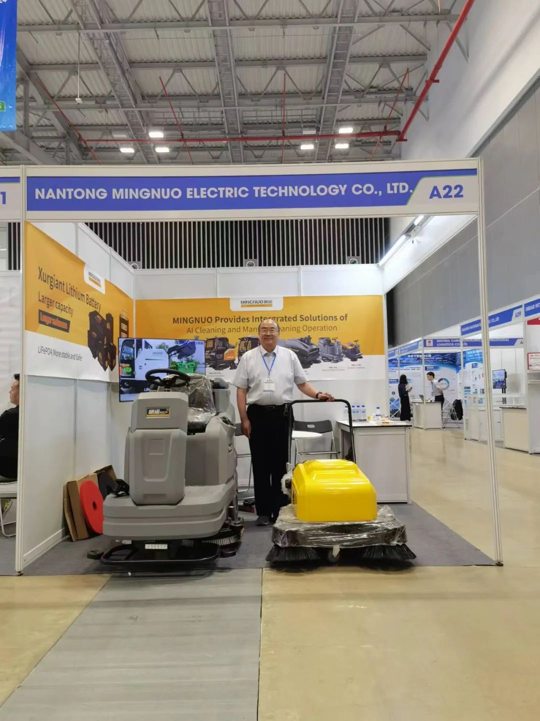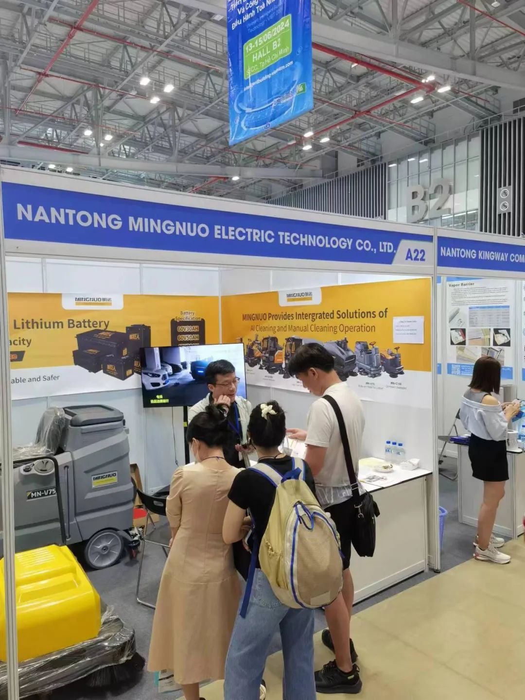越南是中国在东盟地区的重要贸易伙伴,智能行业正迎来快速发展。胡志明市作为越南经济中心,正大力推进智慧城市建设。明诺瞄准了这一巨大的市场潜力,在本次展会上重点展示了自主研发的两款小型清洁设备:驾驶式洗地机和手推式电动扫地机。