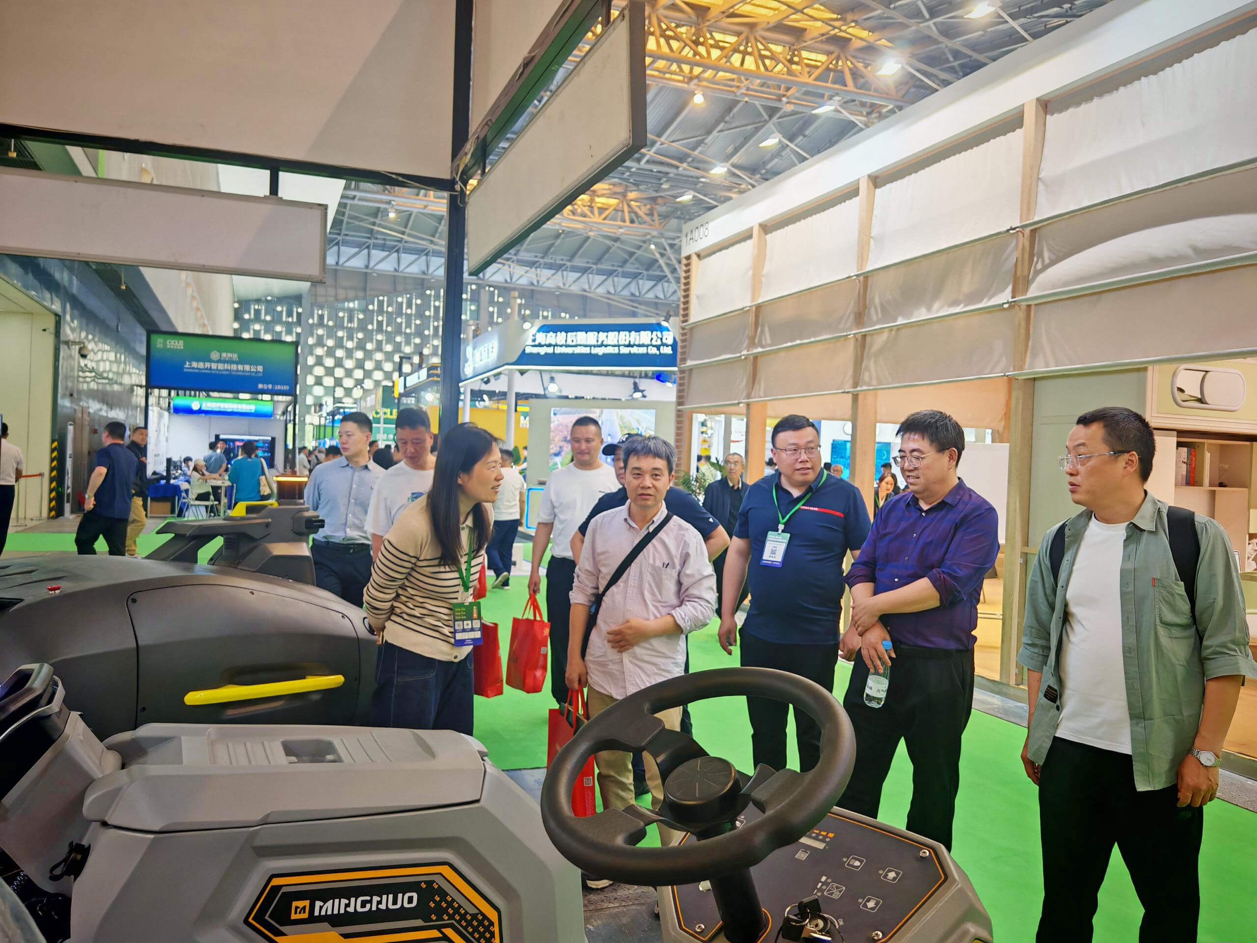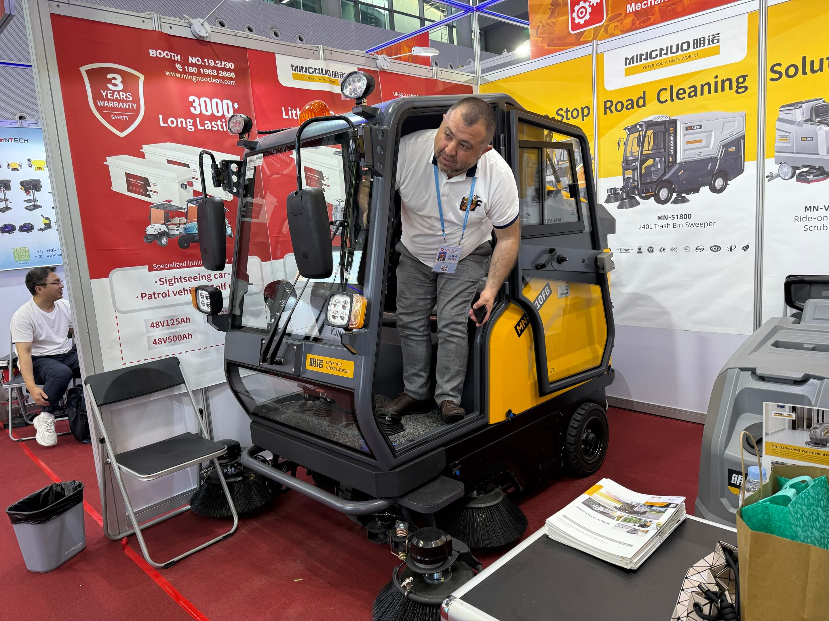 明诺本次全方位展示覆盖校园全场景的智能化清洁设备与服务解决方案。展会现场,我们展示了智能巡扫机器人AI130、封闭式扫地车E850FB、驾驶式洗地机V75、手推式洗地机V53以及多款磷酸铁锂电池。