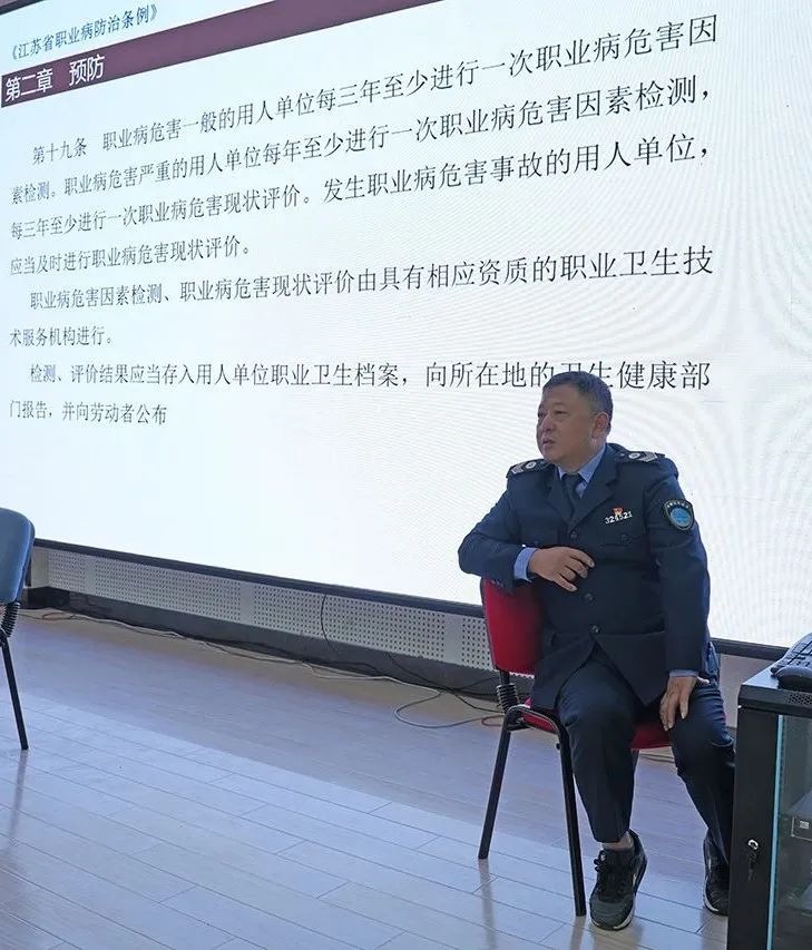 此次宣传周活动,海安市卫生监督所的领导为大家详细讲解了《江苏省职业病防治条例》的相关内容,并在宣讲期间向大家发放宣传手册和宣传用品。他们强调了职业病防治条例的重要性,并呼吁大家在日常工作中注意职业病防护,确保健康安全,鼓励大家积极参与宣传职业病防治相关知识。