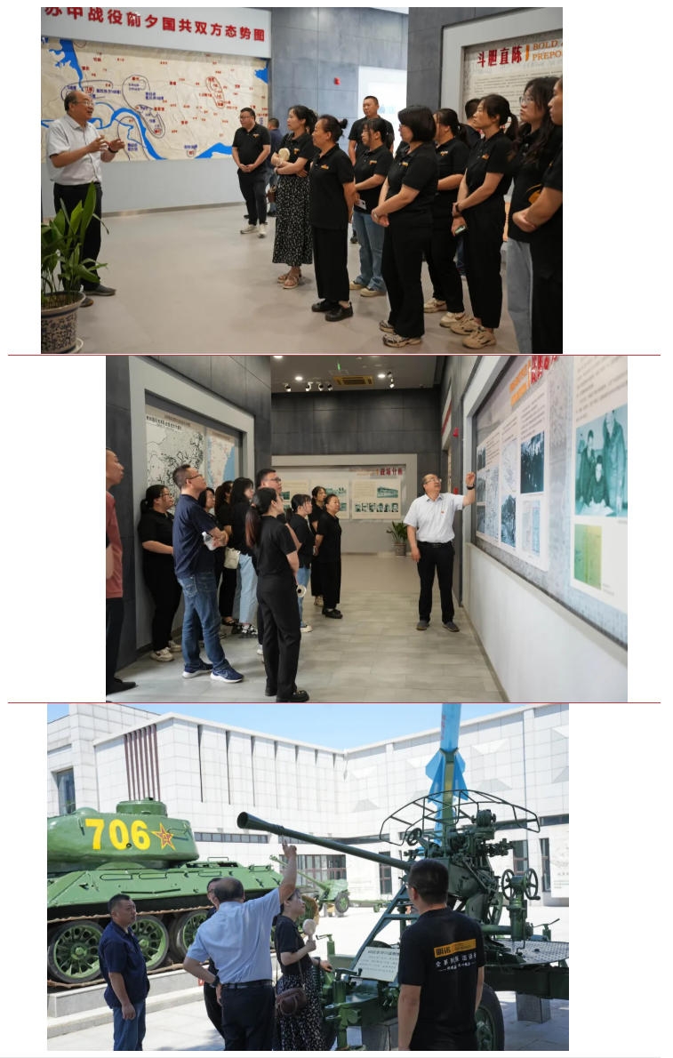 首站,大家怀着崇敬的心情走进苏中七战七捷纪念馆。党支部书记邵建根亲自担任讲解员,为全体党员生动讲述了"七战七捷"的光辉战史。邵建根结合馆内珍贵文物和历史照片,深入浅出地解读了这场经典战役的战略意义和革命精神,鼓舞同志们学习革命先辈“坚定信念、艰苦奋斗”的精神,面对如今市场挑战,我们应拥有顽强的韧性以及创新突破的决心。