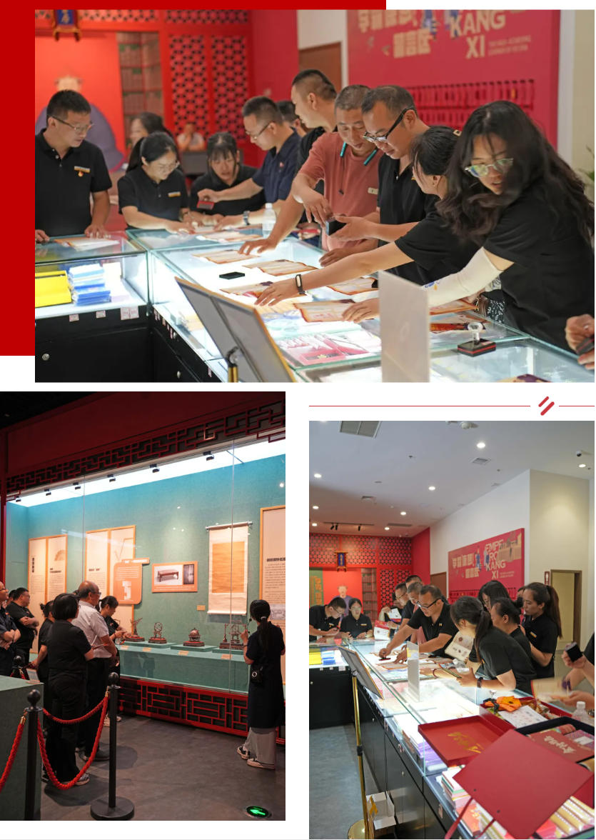 接着,队伍转赴海安博物馆参观"学霸康熙"主题特展。在讲解员生动讲述下,大家从康熙帝"勤政好学、励精图治"的治国理政智慧中汲取力量。参观过程中,同志们结合部门工作实际展开热烈讨论,有党员分享道:"康熙帝勤学善思的精神值得我们学习,这对提升业务能力很有启发,我们必须不断提升专业能力,才能更好服务企业发展。"
