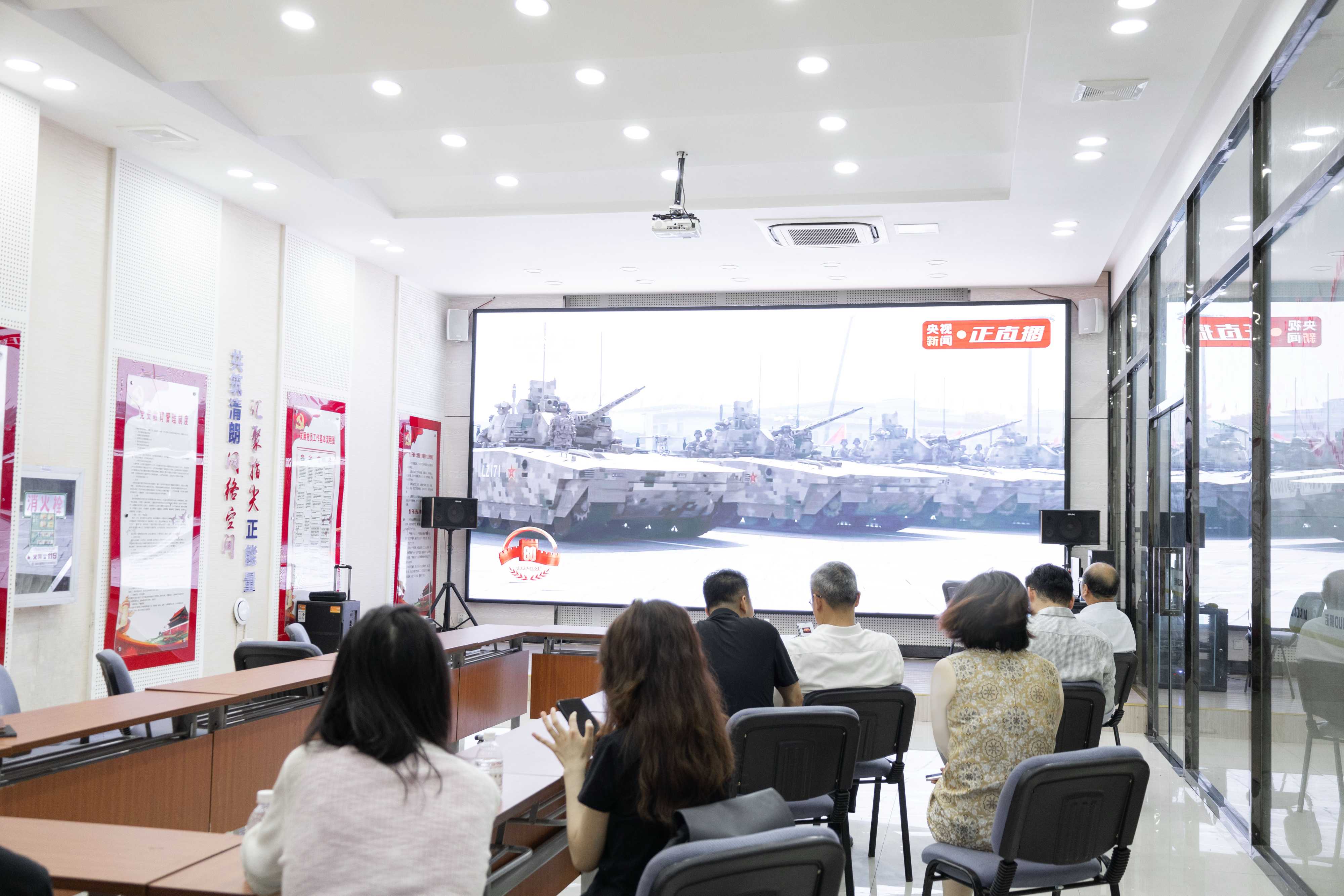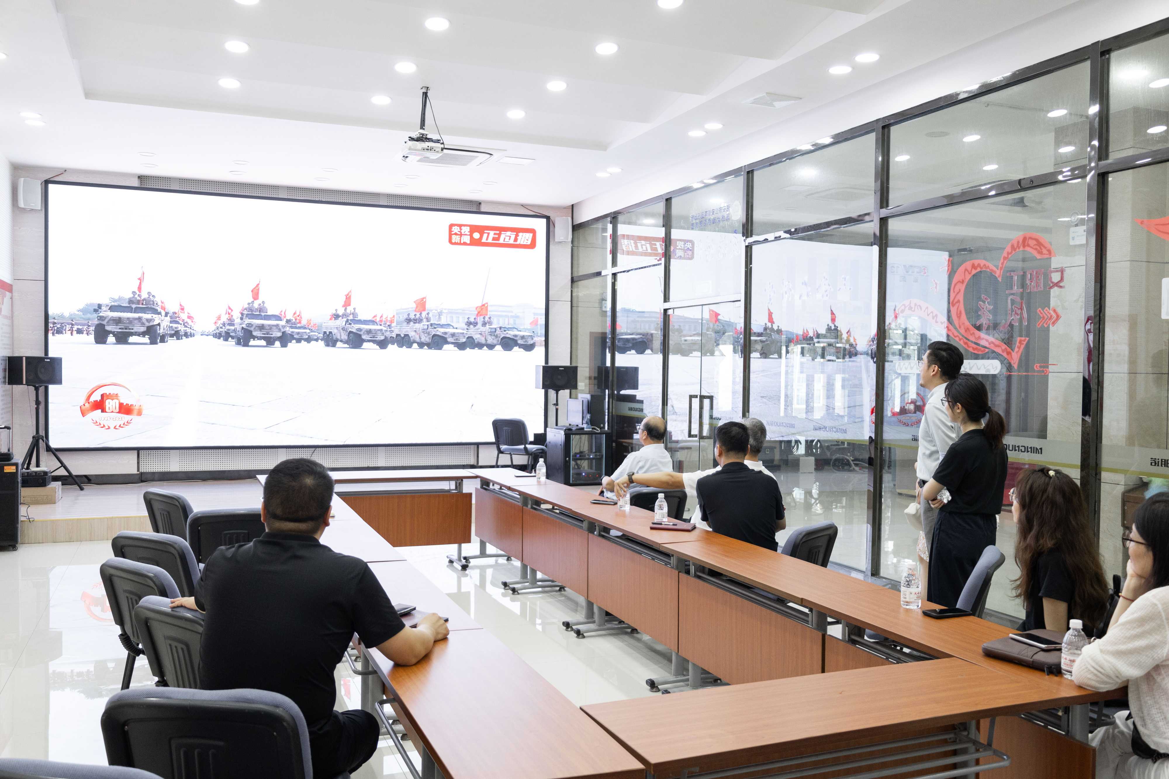 9月3日上午,南通明诺电动科技股份有限公司研发大楼培训教室内,国旗飘扬、庄严肃穆,20多名党员齐聚一堂集体观看纪念中国人民抗日战争暨世界反法西斯战争胜利80周年阅兵直播盛况。