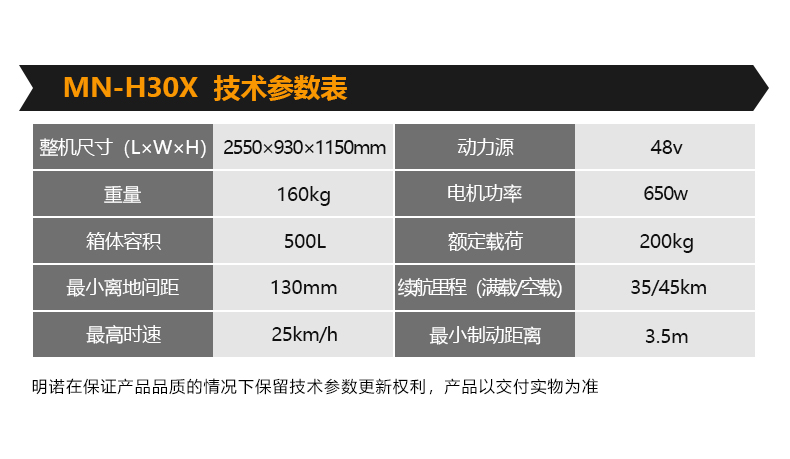 MN-H30X三轮保洁车 整车方便灵活,随走随停,仅需一人就可操作,且易清洗,装卸方便,便于垃圾收管、储存、清运。适用城镇街道、工厂、学校、医院、居民生活区、机关单位等路段垃圾收集和巡回保洁使用。