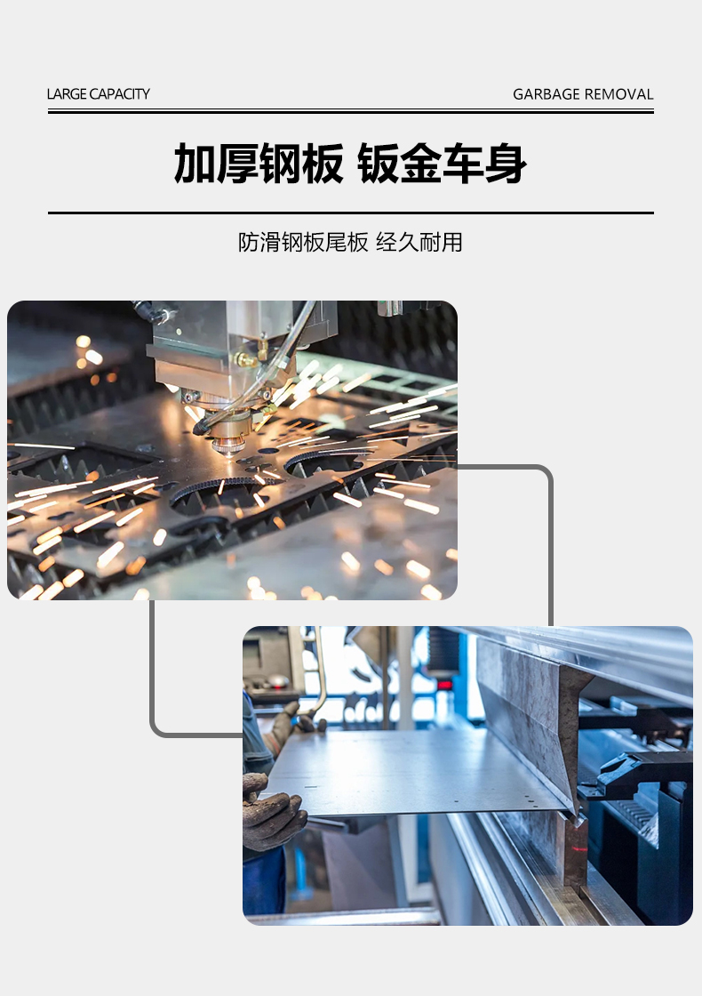l采用钣金车身结构,后箱体采用加厚钢板精制而成,设计工具箱便于存储,尾板为防滑钢板,经久耐用。