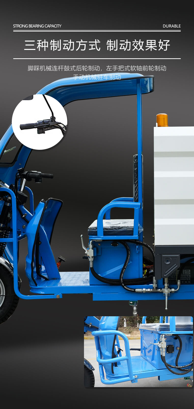 载重三轮电动车底盘,前叉采用液压减震,驾驶舒适且抗震强度大,性能优良,安全可靠。