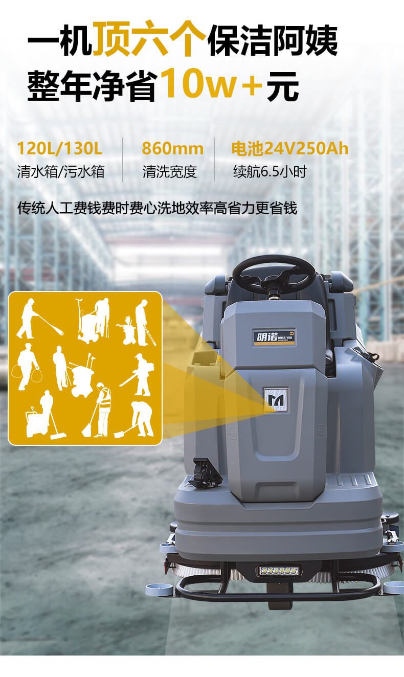 l120L清水箱,130L大容量污水箱,适用于大面积清洁作业;