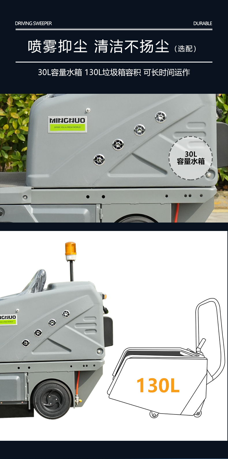 清理多尘地面时,可以加装喷淋附件,有效抑制扬尘!