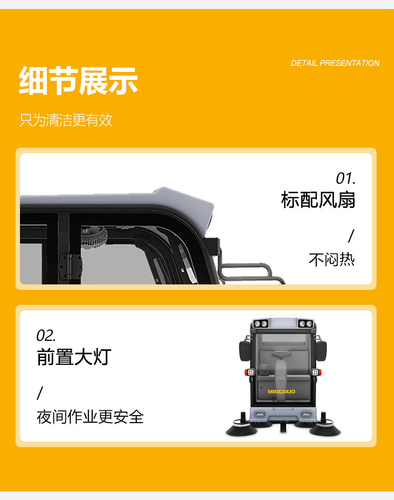 l配有前轮减震装置, 让扫地工作更舒适。