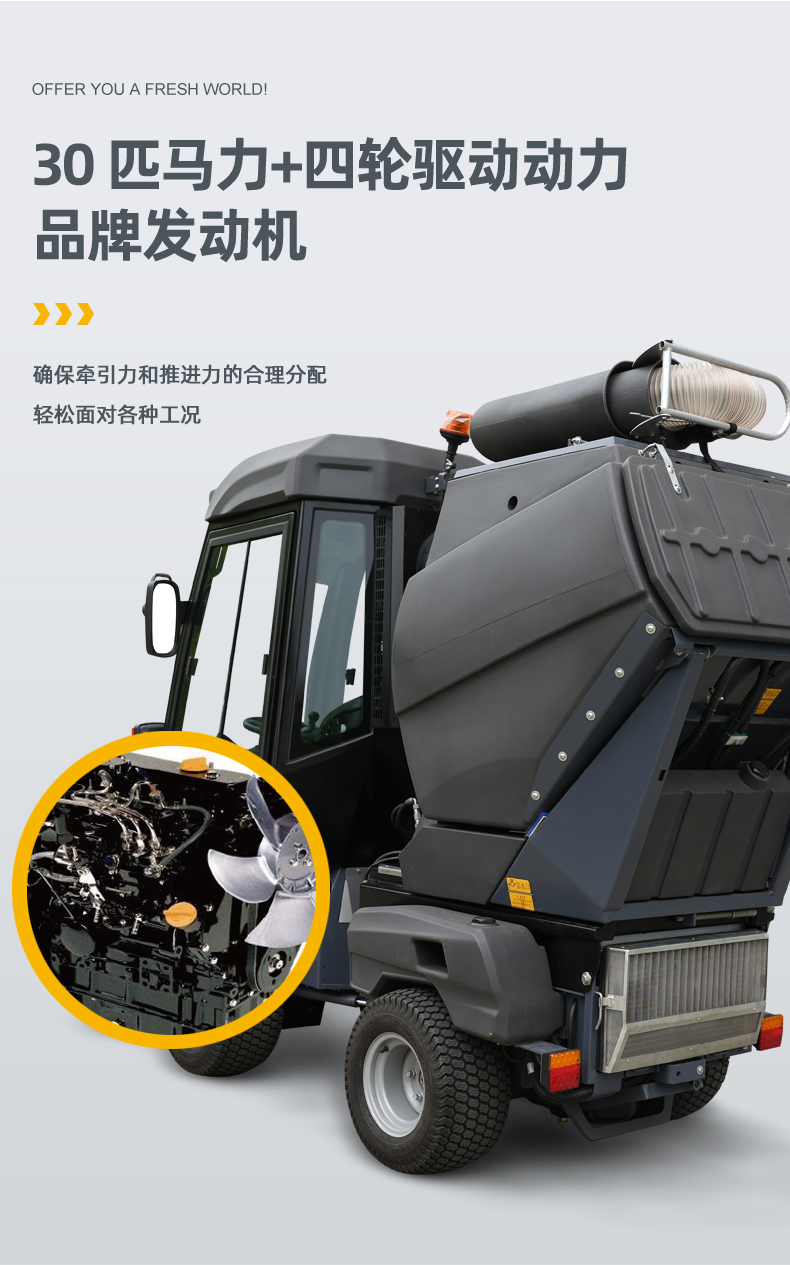 l采用湿式降尘,无滤芯,过滤性更强,无堵塞,清扫更顺畅。整车质量轻,是草坪等绿化区作业的理想选择,完成作业后不会留下任何痕迹。
